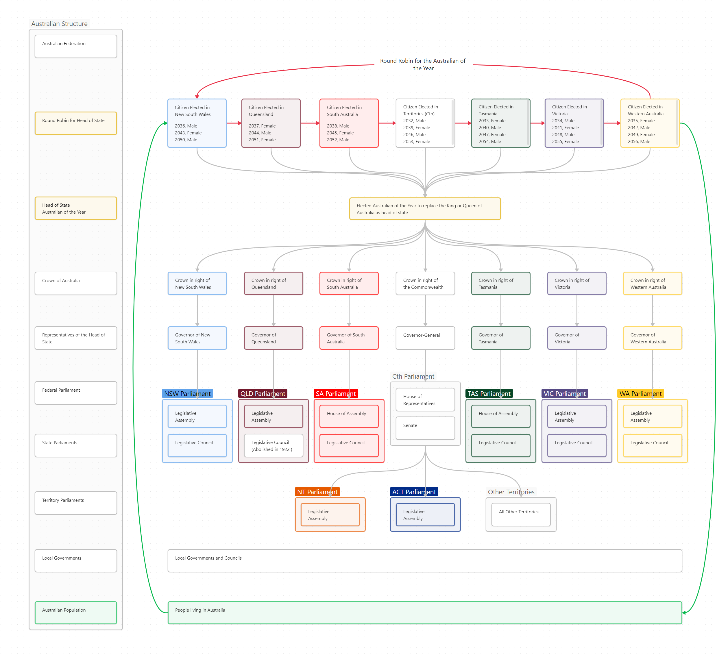 Here is a diagram that shows how an election for the Australian of the Year can replace the monarch as head of state for Australia.